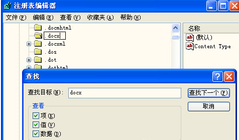 2、更改默认新建格式:打开注册表编辑器,展开“HKEY_CLASSES_ROOT”项并找到“.docx“子项,右击该项并选择“重命名”,将之改为“doc”,这样的话以后当鼠标右键新建word文档时,就会新建一个doc格式的文档而不是docx了。
