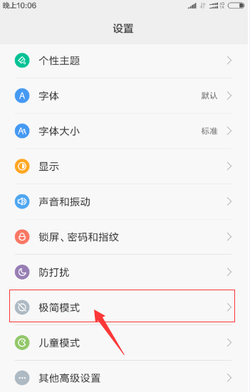 二、进入到小米6手机的设置界面以后,下拉菜单找到“极简模式”一项并点击进入。