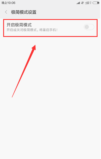 三、进入以后将“开启极简模式”一项的开关开启即可。