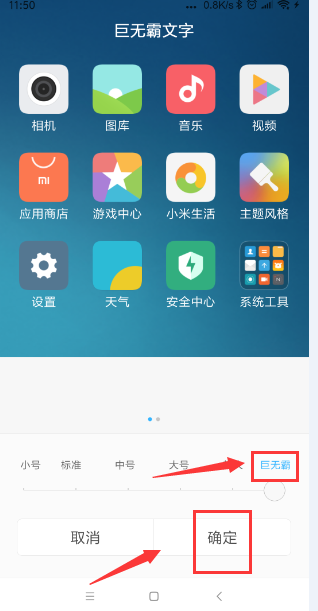 4、下面就会弹出来一个框,点击“确认”即可。这样就可以改变小米屏幕图标的大小了。
