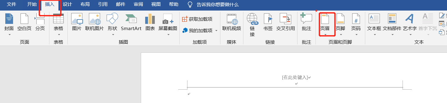 1、打开【word】,在上面菜单栏上点击【插入】并且选择【页眉】功能。