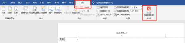 3、设置完成后,点击【设计】,选择【关闭页眉和页脚】即可。