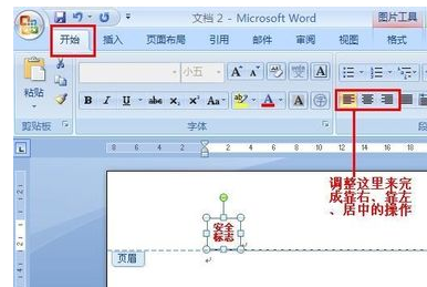 9、在图标选定状态下,在“开始”页“段落区域”选择居中、靠右、靠左的操作调整图标是否居中、靠右、靠左的操作,如图;