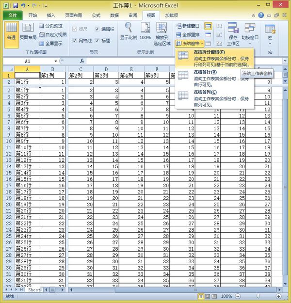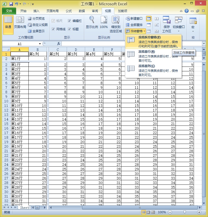 第二步:单击”冻结窗格“按钮,再单击”冻结拆分窗格“,完成设置。