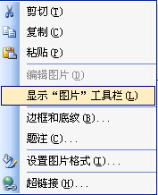 1、在图片上单击鼠标右键,在弹出的快捷菜单中选择显示图片工具栏命令;