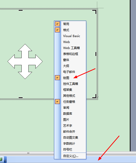 2、方法二,在下方状态栏(如图),右键,弹出的选项中,在绘图前打勾即可。
