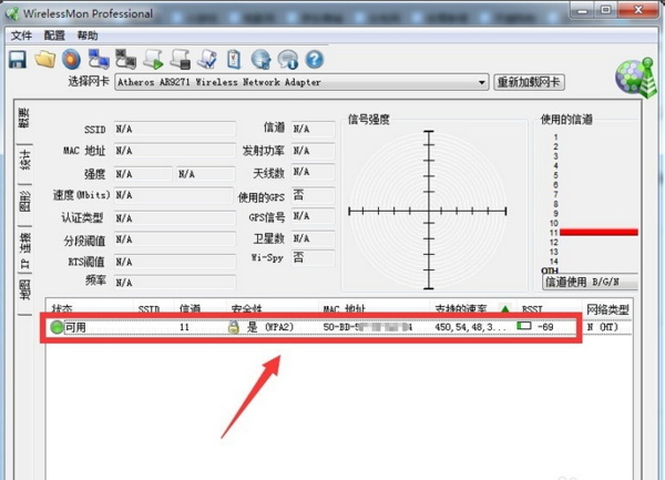 从“wirelessmon”程序主界面,就可以查看到当前周围所有的WiFi信号啦,其中也包括隐藏的Wifi信号。
