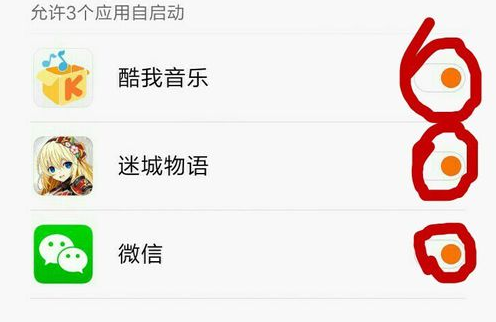 打开权限管理,可能有些需要ROOT权限,我们先设置自启动管理,找到所有软件设置禁止自启。