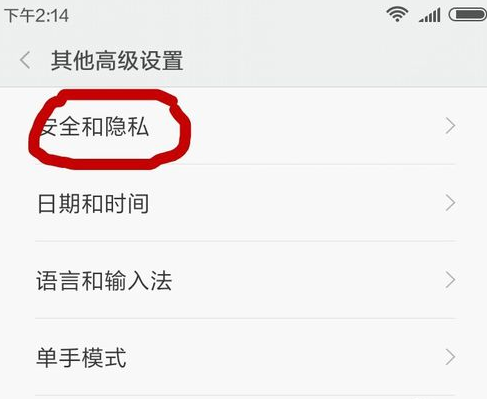 到设置里,在其他高级设置里找到安全与隐私。