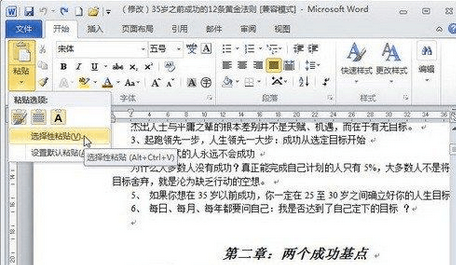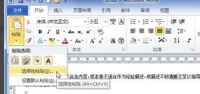 “选择性粘贴”功能可以帮助用户在Word2010文档中有选择地粘贴剪贴板中的内容,例如可以将剪贴板中的内容以图片的形式粘贴到目标位置。在Word2010文档中使用“选择性粘贴”功能的步骤如下所述: