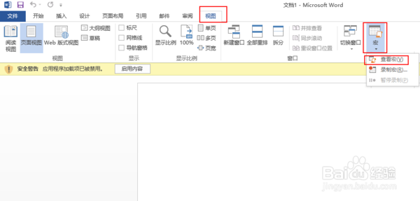 2、点击菜单栏中“视图”--->"宏"--->"查看宏“选项