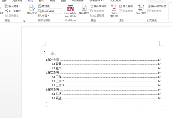 第五步、最后即可引用目录,这样就可以可以自动生成word2013目录了,最终效果如下图。