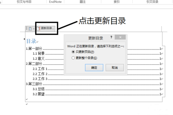7、当标题发生变化时,可以选中目录,点击“更新目录”按钮,选择“更新整个目录”,这样目录就会自动更新了。