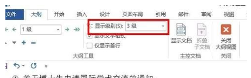 步骤三:等到所有级别设置好之后,可以选择显示的级别,一般论文要求3级标题,如下图红色框中所示。随后看到的内容也就是目录的内容。
