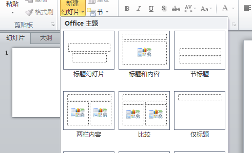 8、点击【开始】菜单,点击【新建幻灯片】下拉之后就可以查看到刚刚新建的PPT模板。