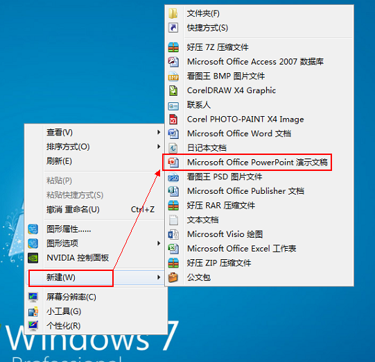 在电脑桌面空白的地方,右键,点新建,点 PPT演示文稿 新建好,打开就可以开始做了