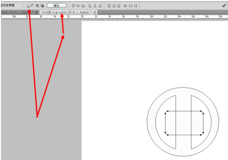 9、在用圆角工具画一个方框,点击上边的第一个添加到形状区域,点击组合;