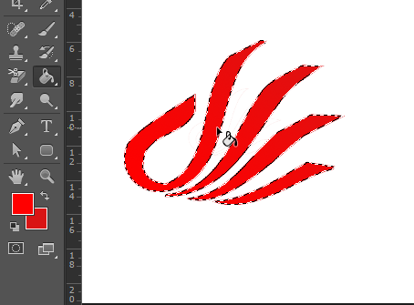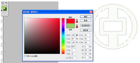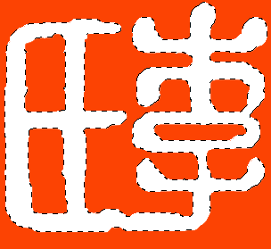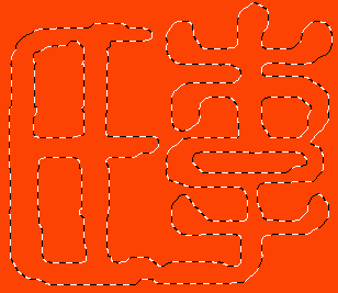 选择文字部分,保证选区准确无误后,储存选择(赋名),取消选择,将整个图片用红色填充,再载入选择(用刚刚赋名的选择),出现: