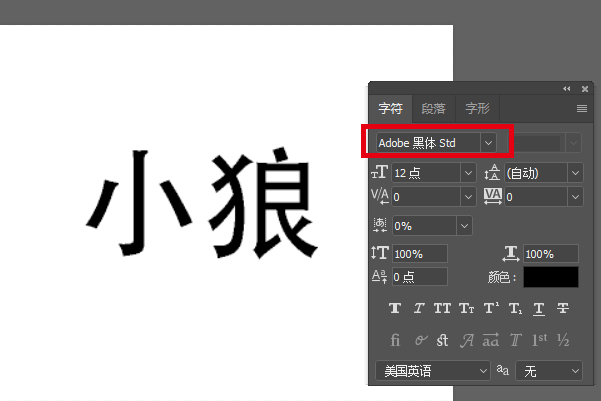 2、在画板上面输入文字内容,即logo的名字,然后选择字体类型;