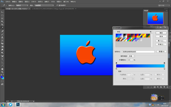 5、选定“背景图层”,打开“渐变工具”,设置渐变色,对“背景图层”拉一个线性渐变,完成。