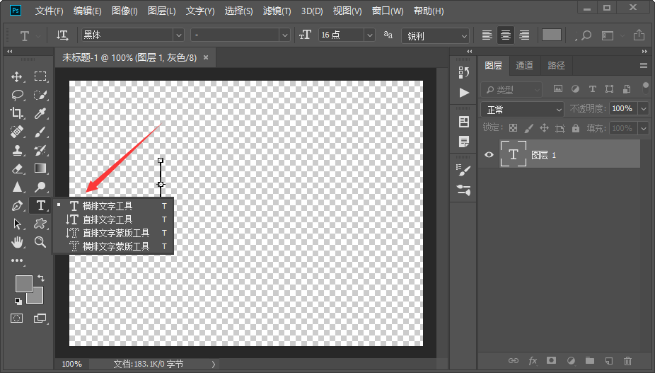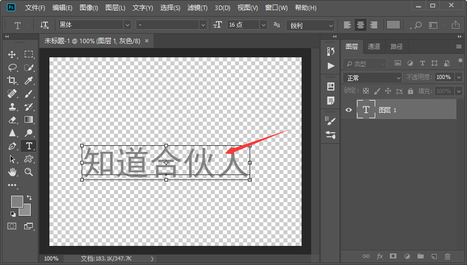 1、以文字logo为例子,打开PS,点击选择“文字工具”;