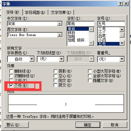 同理我们选择要下标的文字或字符,用步骤2 方法,在打开的“字体”对话框中,选择“下标”效果。