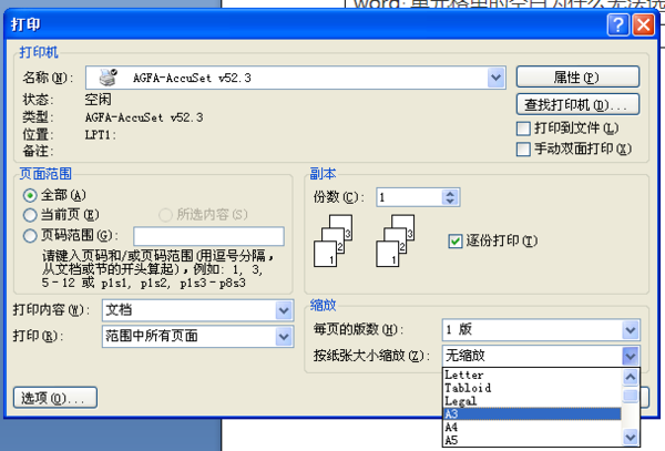 2、其他导致打印后字体变小的真正原因主要是打印时设置了缩放。每页的版数是不是“1版”?按纸张大小缩放是不是设置的“无缩放”?