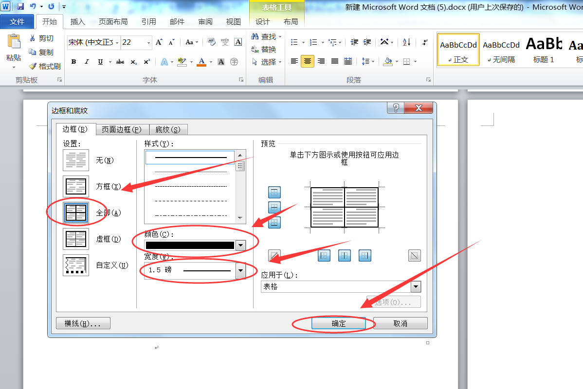 6、第六步点击确定之后,我们就成功设置了word中表哥的边框颜色和样式。