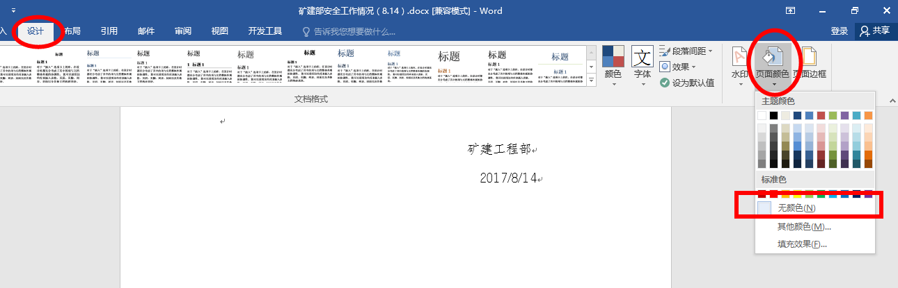 方法3:设计——页面颜色——无颜色: