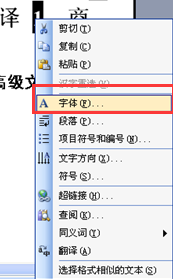 2.接着单击鼠标右键,在弹出的窗口里面点击字体这个选项。