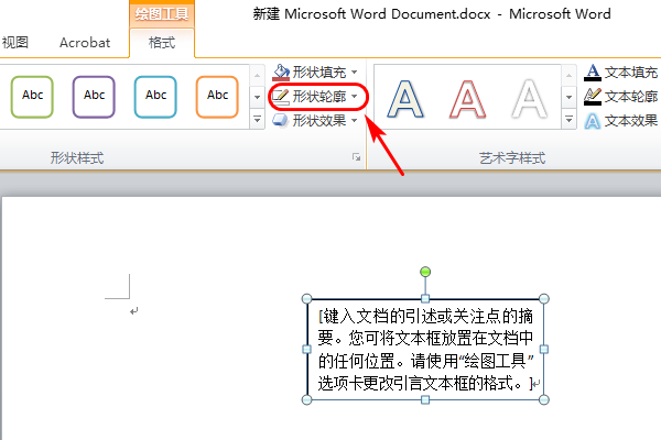 4、选中文本框后,点击“格式”栏里面的“形状轮廓”;