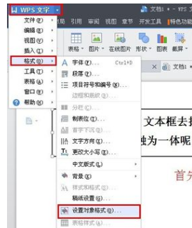 2.选中文本框“右击—设置对象格式”。