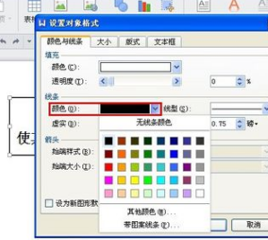 在“线条”“颜色”的下拉菜单中“无线条颜色”
