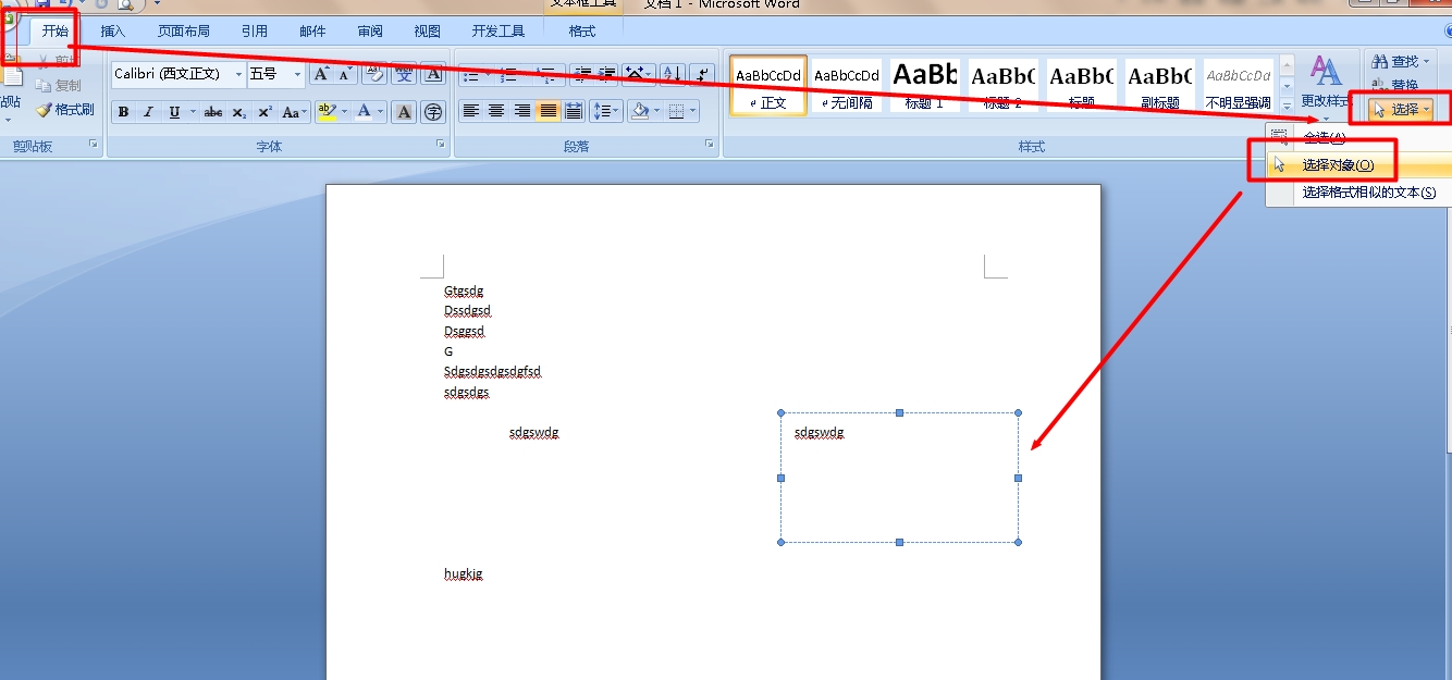 点击开始-选择-选择对象,然后用鼠标在文本内容点一番出现8个小方块的就是文本框了,下图下面左边是没点击之前的状态,右边是选中后的状态。