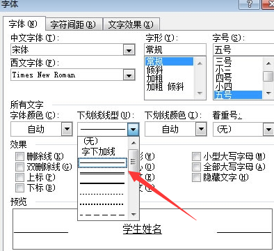 2、选中文字单击右键选择“字体”,在“下划线线型”中选择下划线。