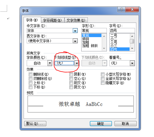 右键---字体---设置下划线