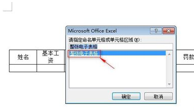 5、在弹出的“选择表格”对话框中,选择整张工资表,按确定按钮。