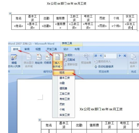 这里说的word工资表应该指的是word制作工资条,操作方法如下: