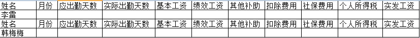 2、根据Excel工资表的内容在Word中创建一个如下图所示的基本工资条。