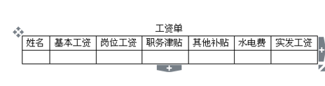 第一,新建word文档,如图绘制一个二行的工资表,第一行为标题,即工资表的项目名称。