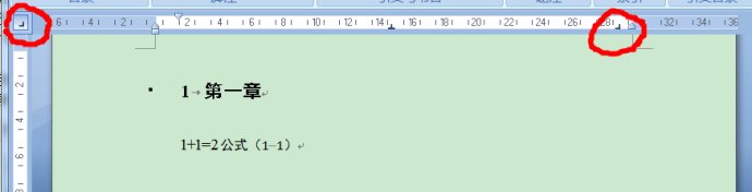 把左上角的制表位图标切换到右对齐制表位,用放置居中制表位相同的方法放置一个右对齐制表位在行末。