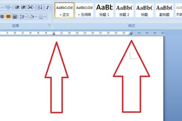 6、点击确定,即可看到“标尺栏”在20和40位置分别出现了一个黑色拐角符号。