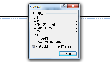 步骤三:然后在word文档中,会弹出字数统计的窗口,可以看到字数、页数、段落数、行数等更多详情了,查看过后点击关闭。