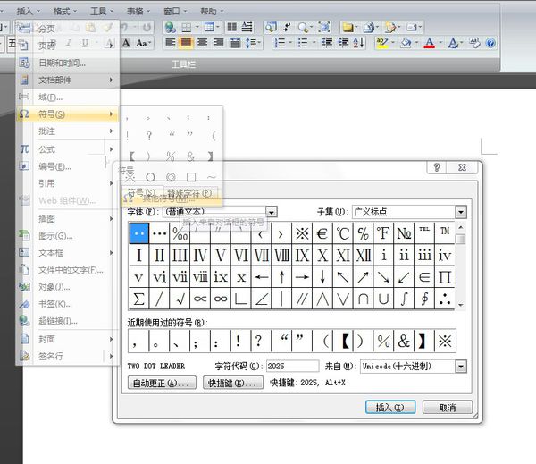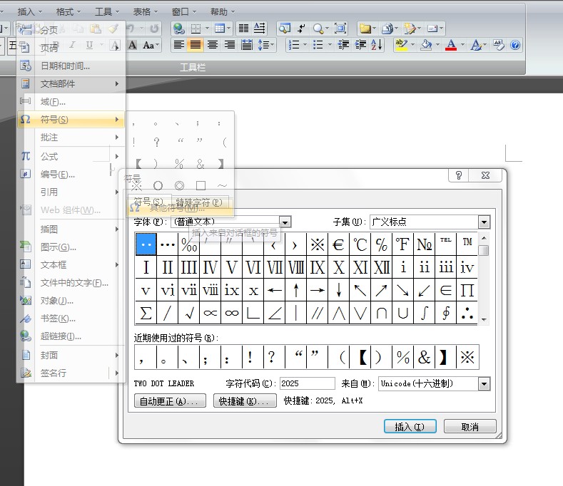 1、单击插入----符号----插入其他符号;