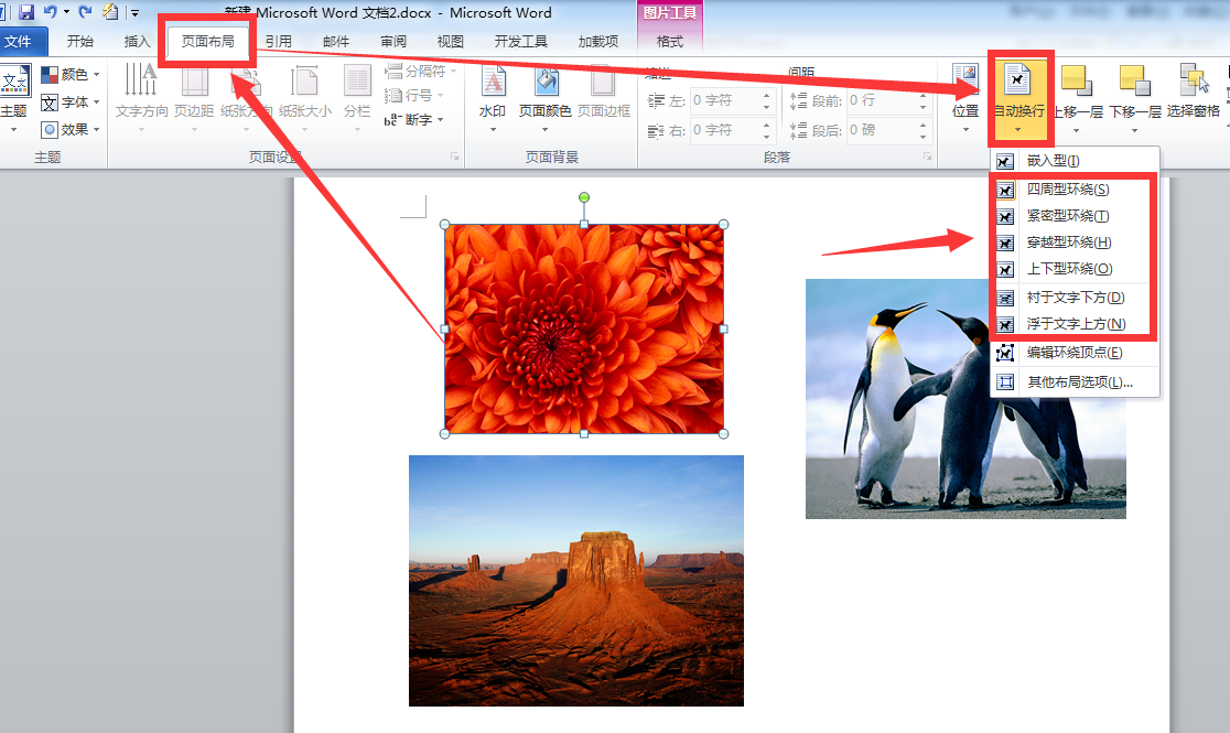 打开word文档,点击选中特定的图片,点击“页面布局”;
