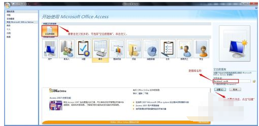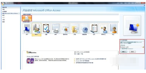 1.进入“Microsoft Office Access 2007”新建窗口,如图: