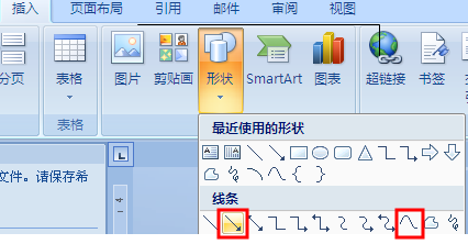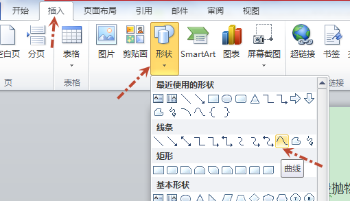 步骤2:点击【【插入】--【形状】,选择【曲线】