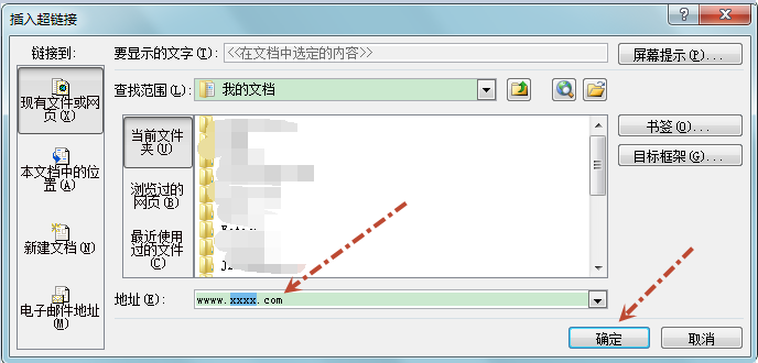 第二步,如图所示,设置超链接,点击确定。