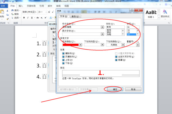 3、在字体标签页,可根据需要设置不同的字体编号格式,然后点击确定按钮即可。