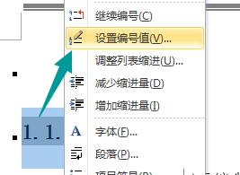3.在一个文档中,可以对编号段落进行“重新开始编号”和“继续编号”,方法是:在使用多级符号列表的段落上单击右键,然后选择相应的命令。